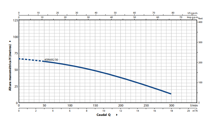 – Funcionamiento en horizontal con los siguientes límites: 4SR7G – 4SR10G – 4SR13G – 4SR25G 18 etapas 4SR33G – 4SR45G – 4SR60G – 4SR75G – 4SR90G 11 etapas.