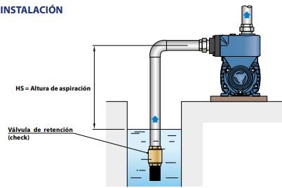 - Altura de aspiración manométrica hasta 9 m (HS)