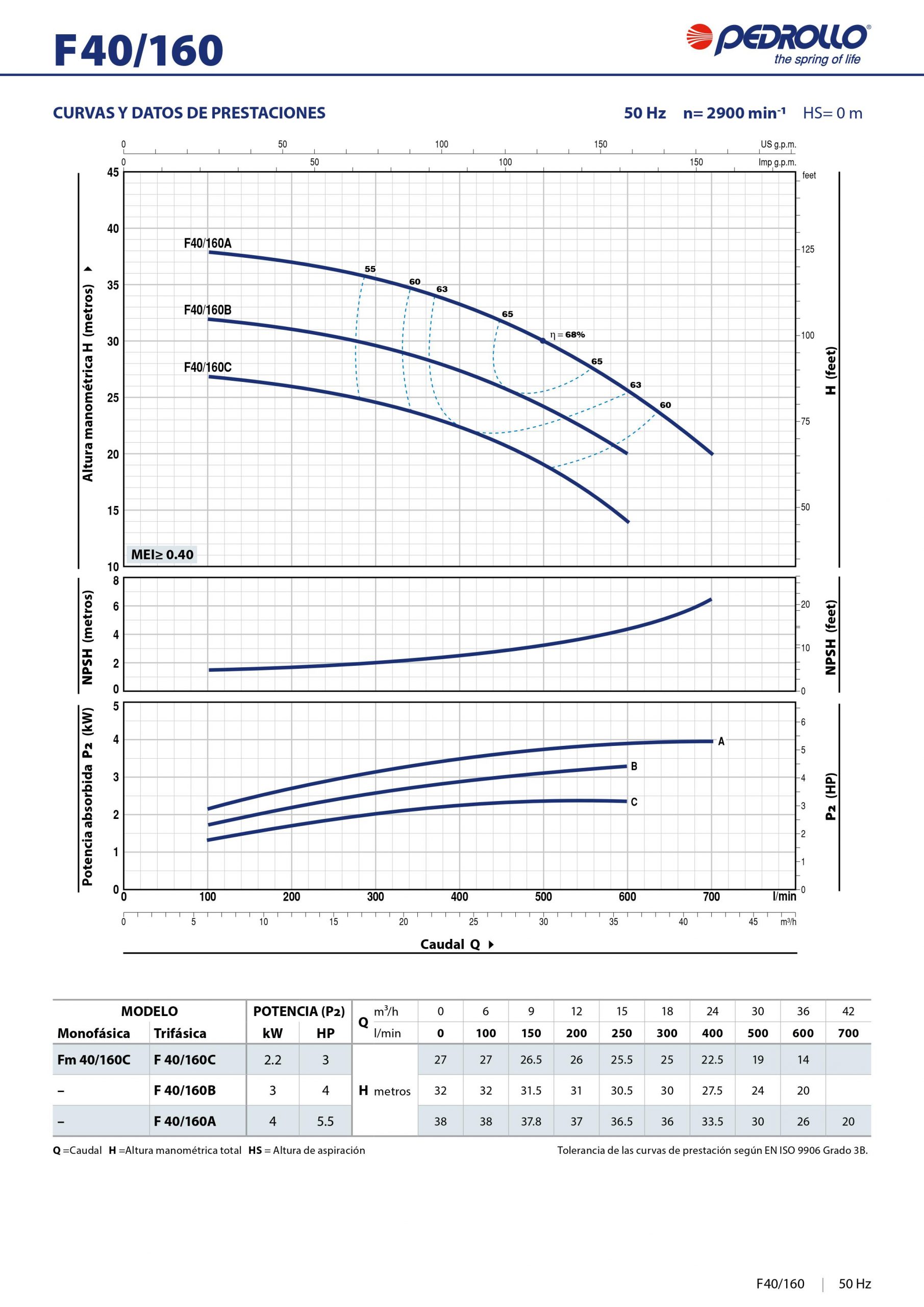 - Presión máxima en el cuerpo bomba 10 bar (PN 10)