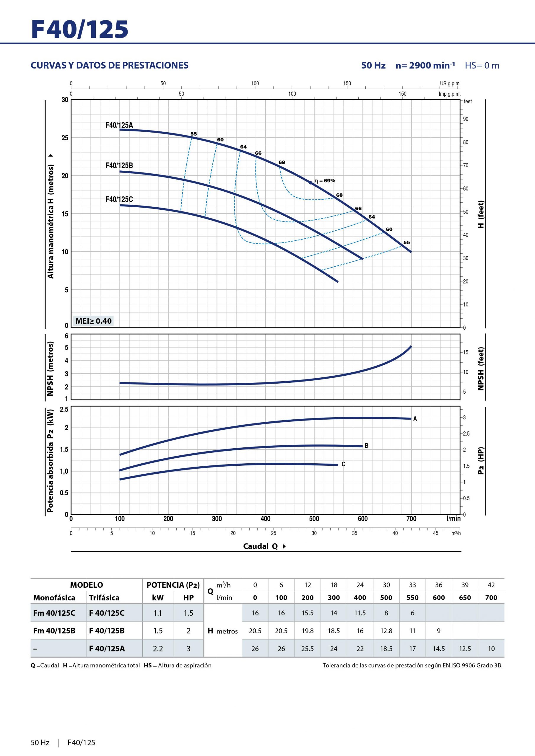 - Presión máxima en el cuerpo bomba 10 bar (PN 10)
