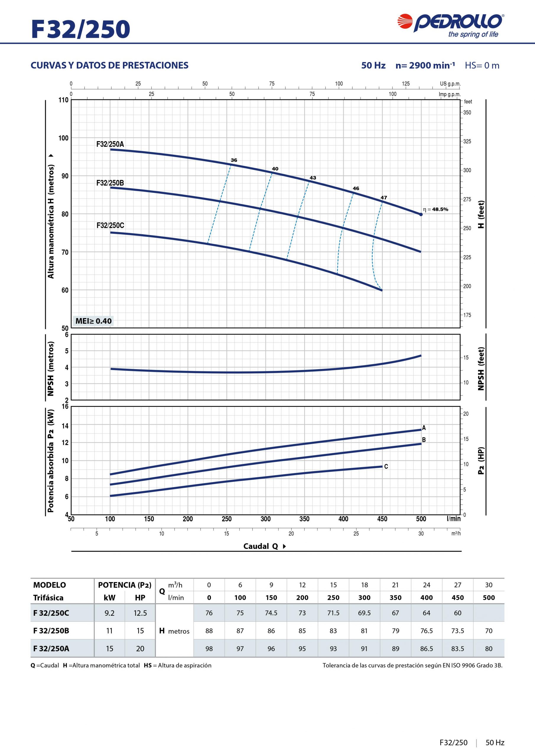 - Presión máxima en el cuerpo bomba 10 bar (PN 10)