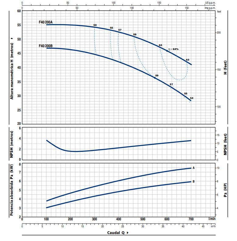 • Mejor punto hidráulico 54 MCA / 80 GPM