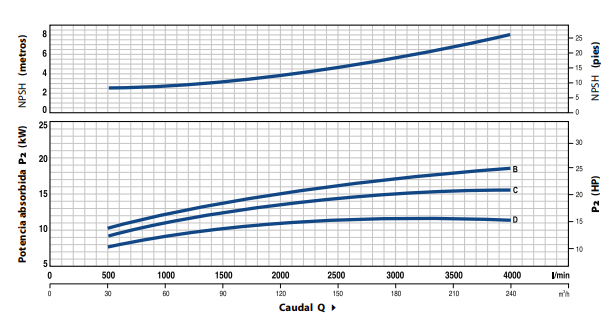 • Presión máxima en el cuerpo bomba 10 bar (PN 10)