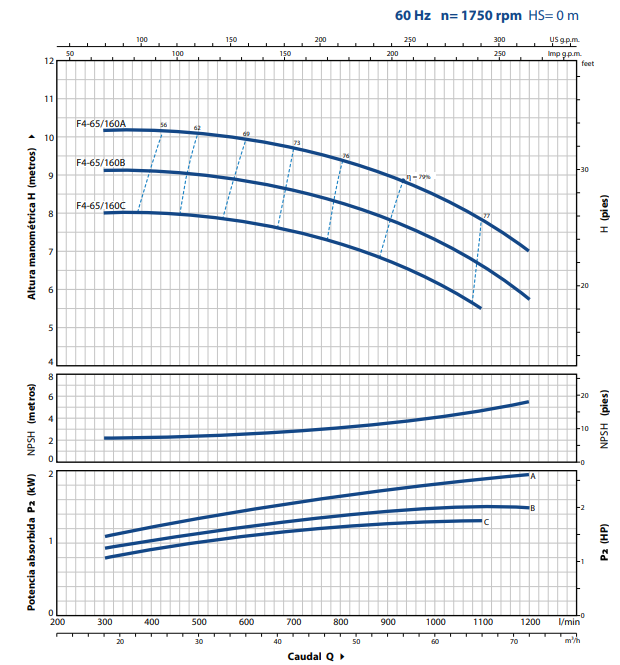 1-4-89 F4-65/160C | Electrobomba Pedrollo | Centrífuga Normalizada | Hierro | Trifásica