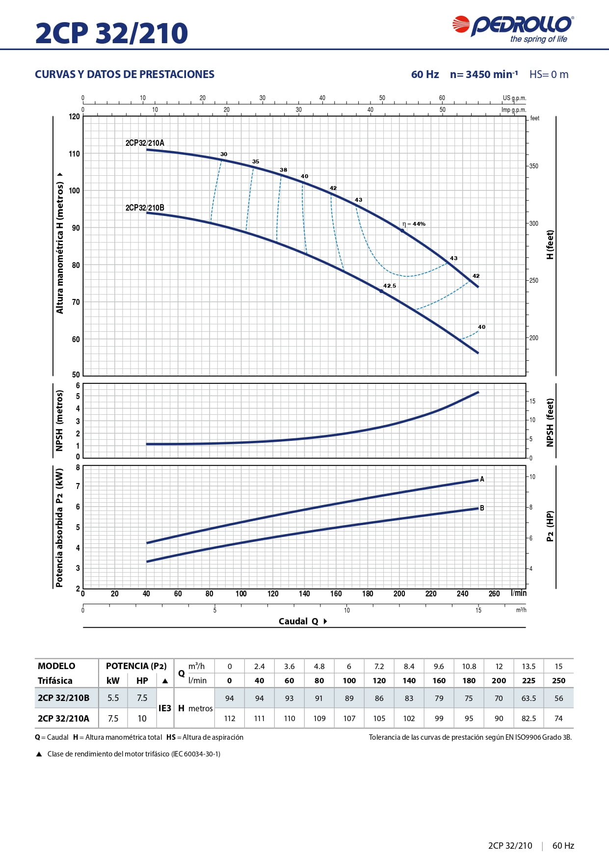 2CP32/210B | 3 | 7.5 | 220/440 | 23/13.8 | 94 | 250 | 2”