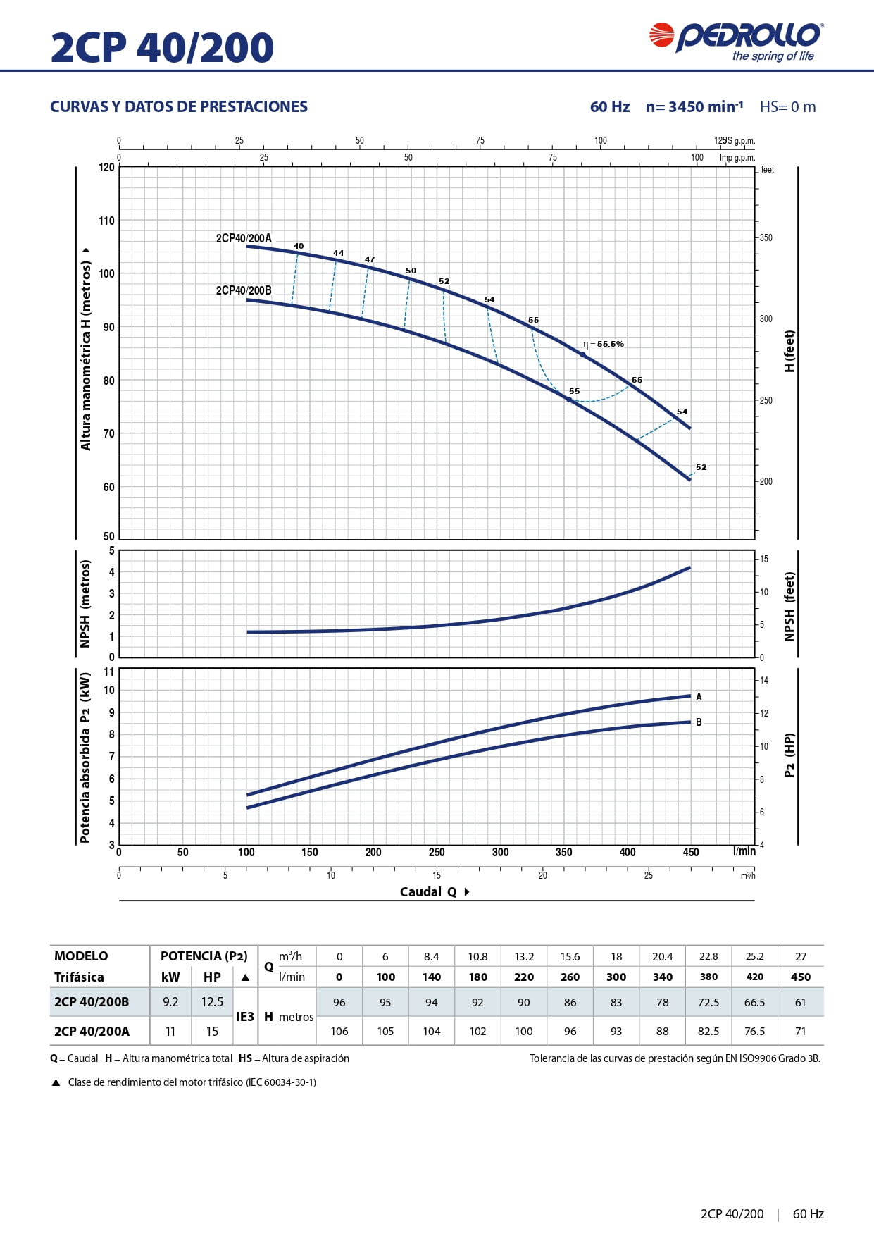 2CP40/200B | 3 | 12.5 | 220/440 | 33/18 | 97 | 450 | 2”