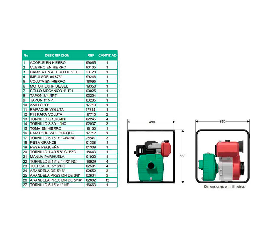 - Sello mecánico: Carbón / Cerámica / Buna-N