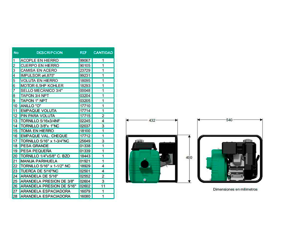 - Voluta: Hierro fundido ASTM A-48, Clase 30