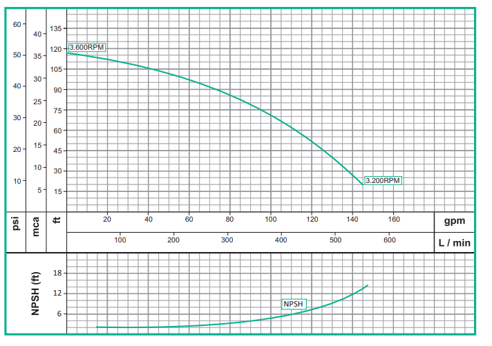 - ** El caudal (Q) máximo se logra con la válvula de paso totalmente abierta (gpm=galones por minuto)