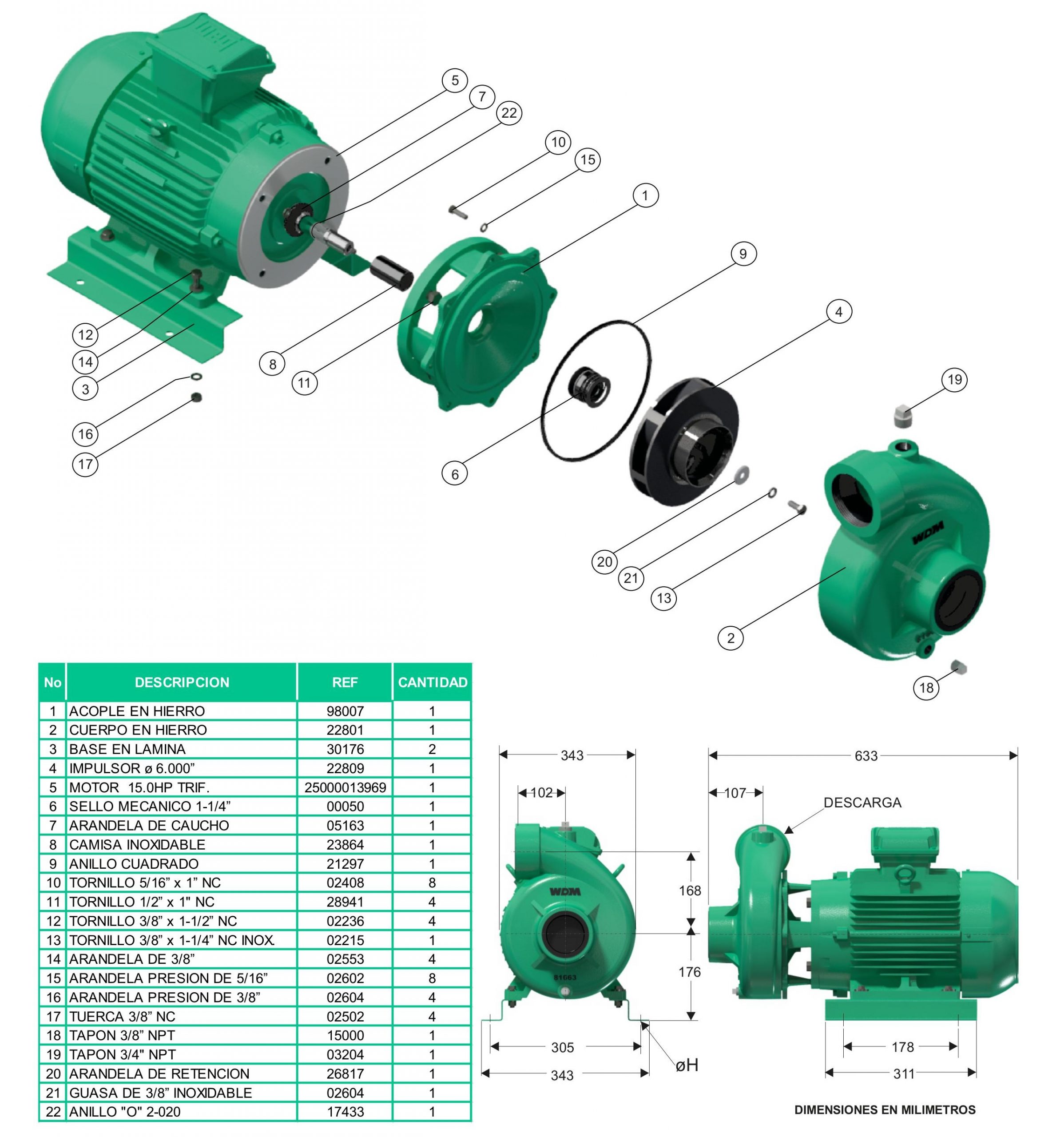 MODELO Ø SUCCIÓN Ø DESCARGA POTENCIA