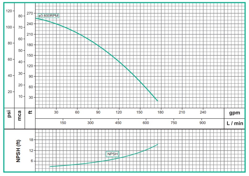 - ** El caudal (Q) máximo se logra con la válvula de paso totalmente abierta (gpm=galones por minuto)