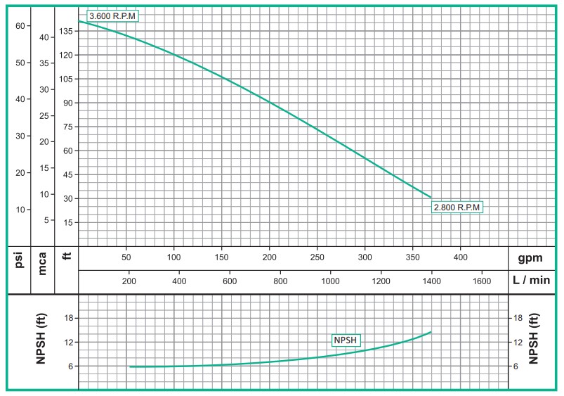 - ** El caudal (Q) máximo se logra con la válvula de paso totalmente abierta (gpm=galones por minuto)