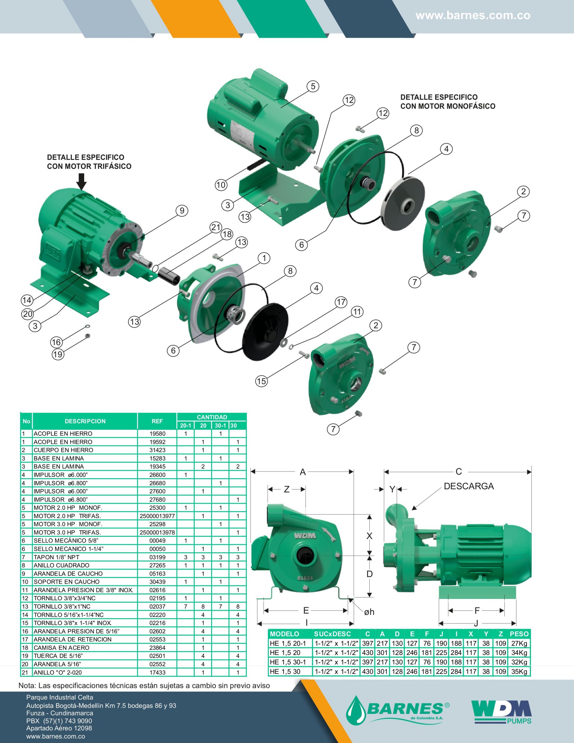 MODELO | Ø SUCCIÓN | Ø DESCARGA | POTENCIA