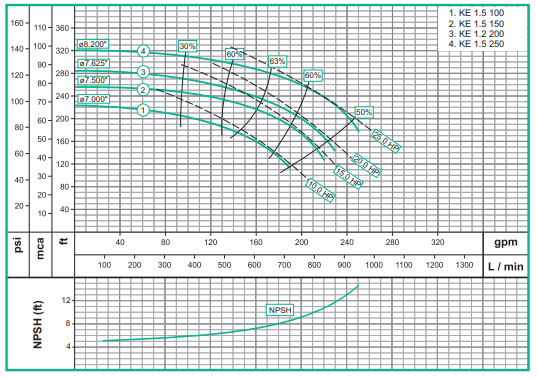 KE 1.5 150 2” NPT 1 1/2” NPT 15.0 1 3 220/440 78 210