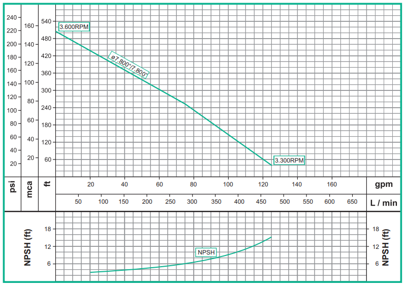 - ** El caudal (Q) máximo se logra con la válvula de paso totalmente abierta (gpm=galones por minuto)
