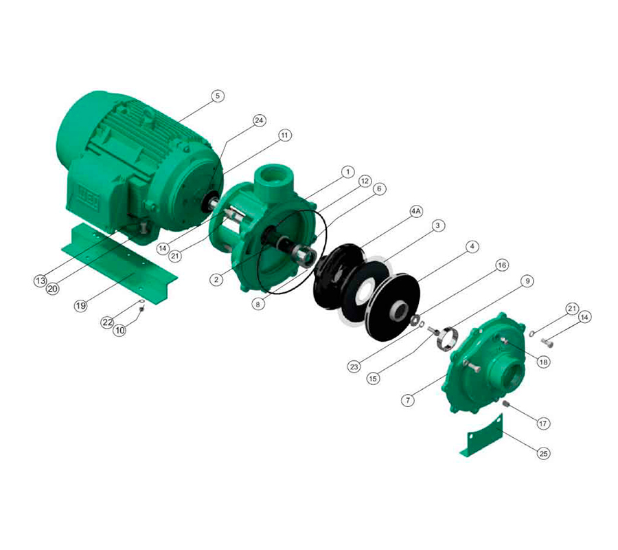 - Tipo de impulsor Cerrado en hierro fundido