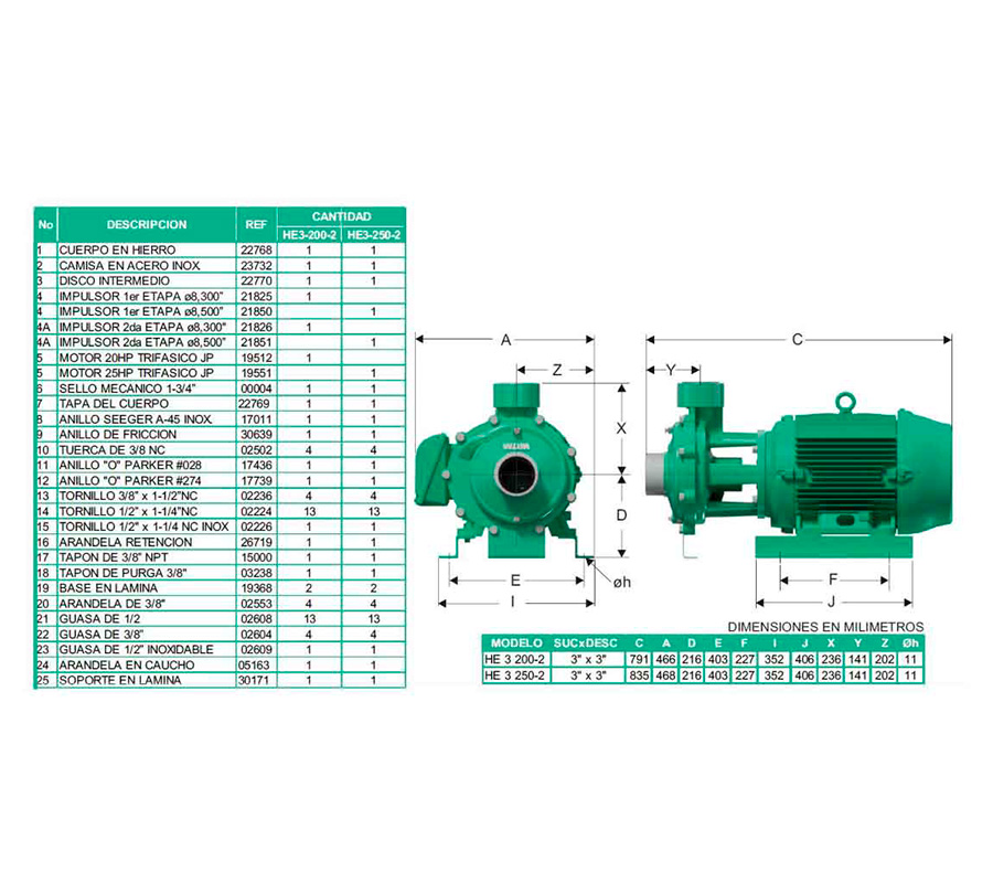 HE 3 250-2 | 3” NPT | 3” NPT | 25.0 | 2 | 3 | 220/440 | 175 | 170 |