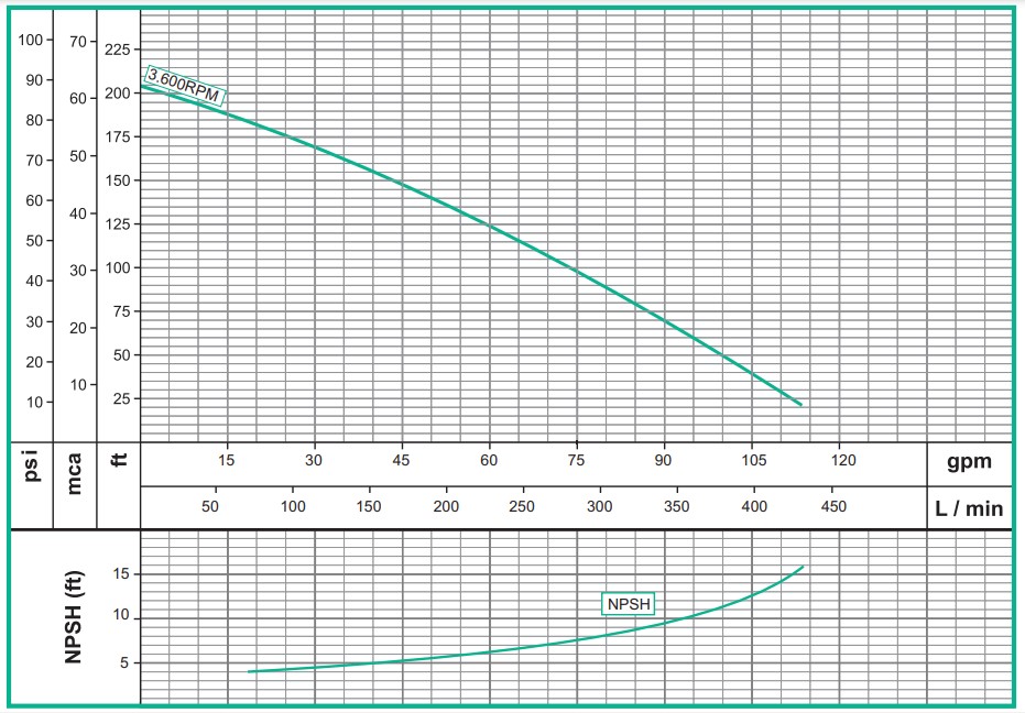 - ** El caudal (Q) máximo se logra con la válvula de paso totalmente abierta (gpm=galones por minuto)