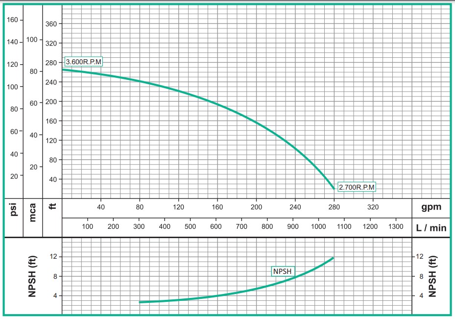 - ** El caudal (Q) máximo se logra con la válvula de paso totalmente abierta (gpm=galones por minuto)
