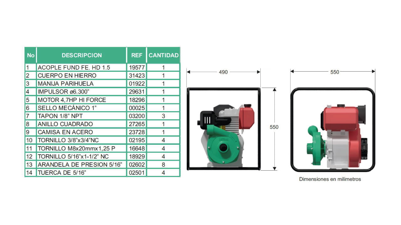 - Sello mecánico: Carbón / Cerámica / Buna-N