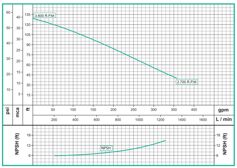 - ** El caudal (Q) máximo se logra con la válvula de paso totalmente abierta (gpm=galones por minuto)