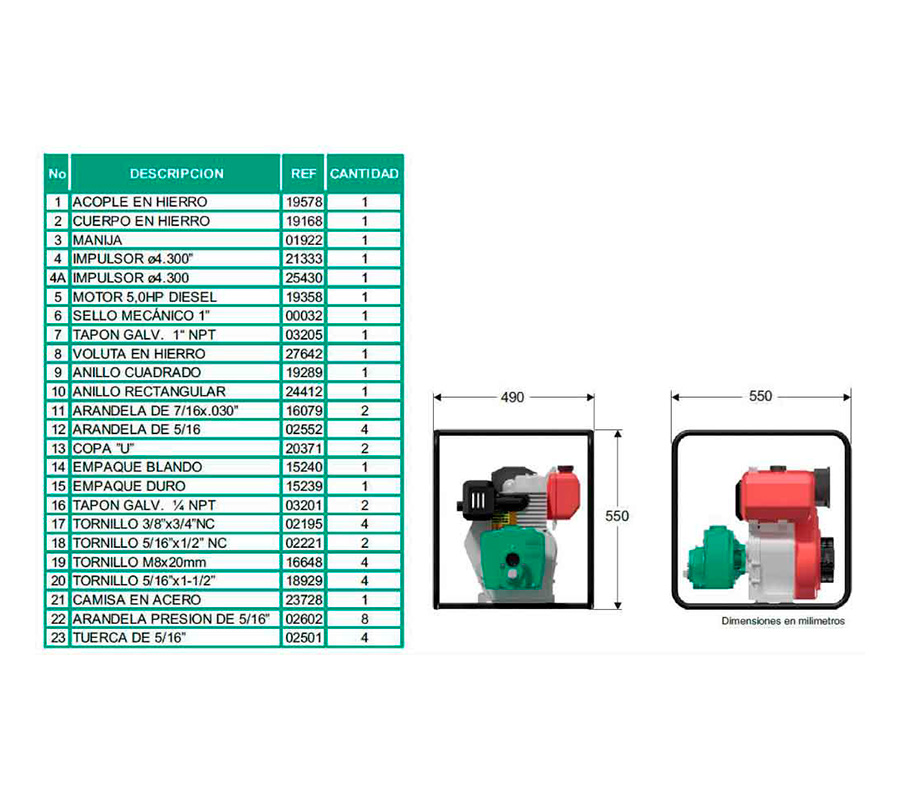 • Sello mecánico: Carbón / Cerámica / Buna-N