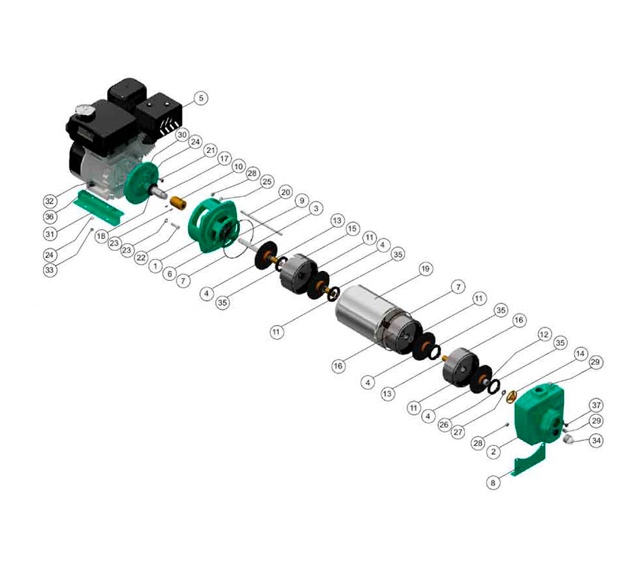 - Sello mecánico: Carbón / Cerámica / Buna-N