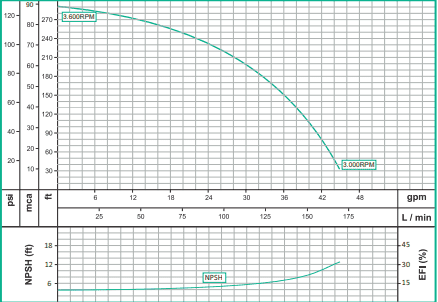 - ** El caudal (Q) máximo se logra con la válvula de paso totalmente abierta (gpm=galones por minuto)