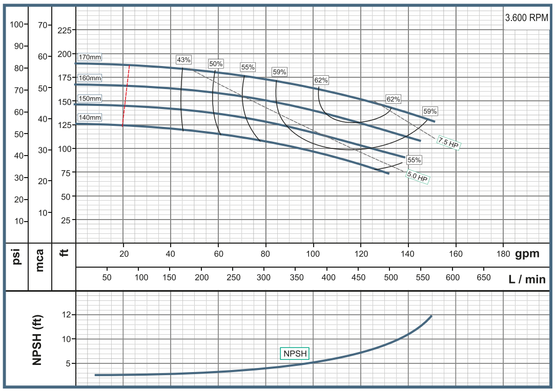 Tipo de impulsor: Cerrado, balanceado dinámicamente (ISO G6.3)