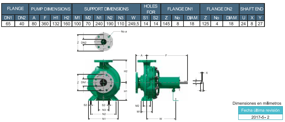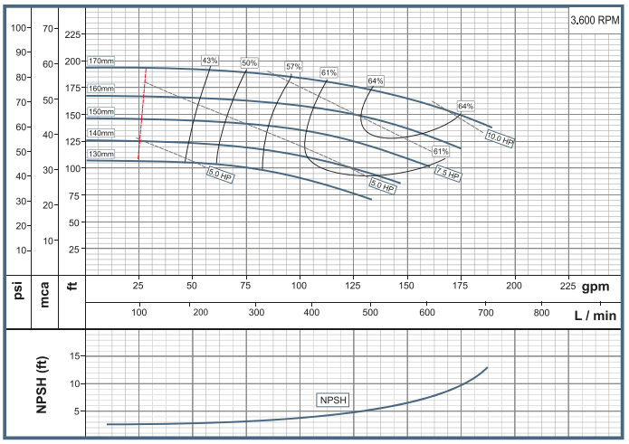 Tipo de impulsor: Cerrado, balanceado dinámicamente (ISO G6.3)
