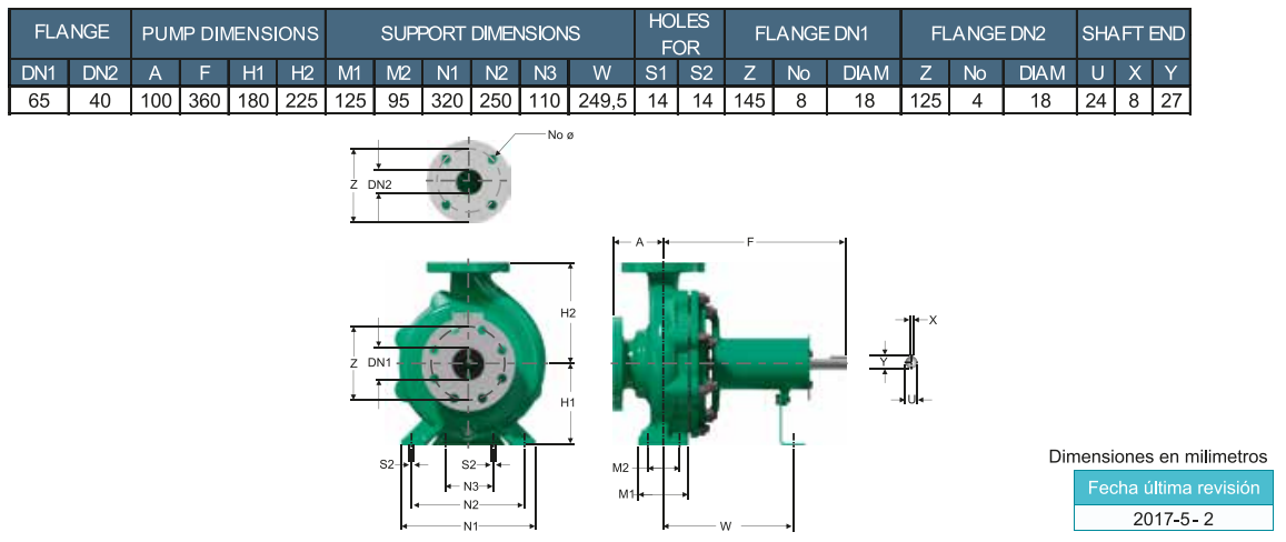 Tipo de impulsor: Cerrado, balanceado dinámicamente (ISO G6.3)