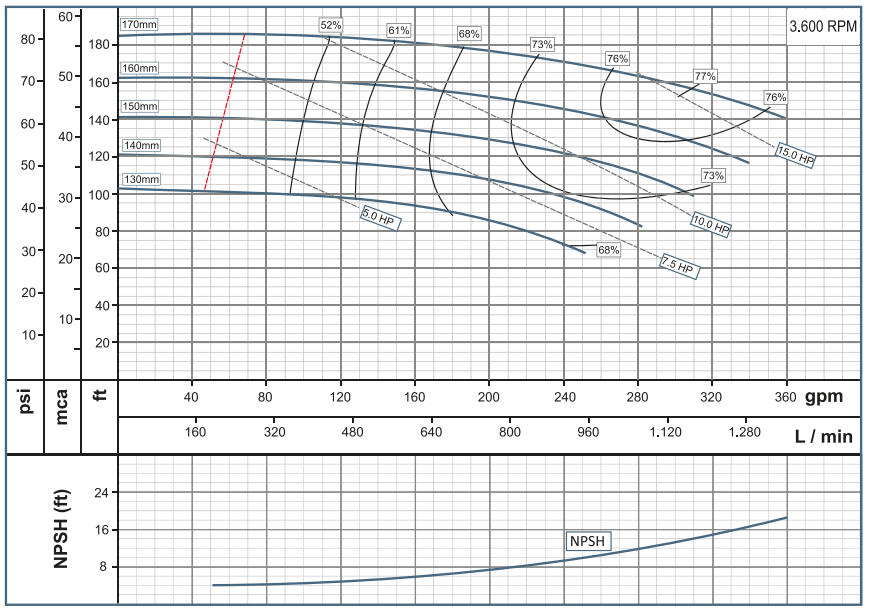 Tipo de impulsor: Cerrado, balanceado dinámicamente (ISO G6.3)