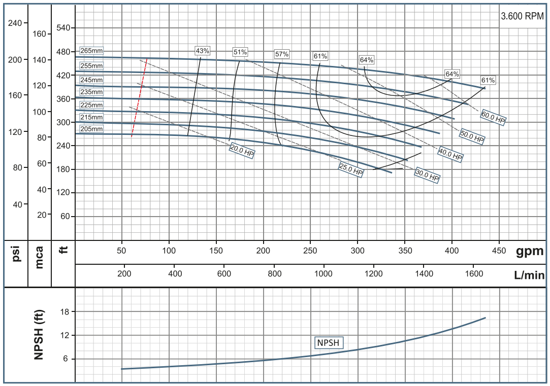 Tipo de impulsor: Cerrado, balanceado dinámicamente (ISO G6.3)