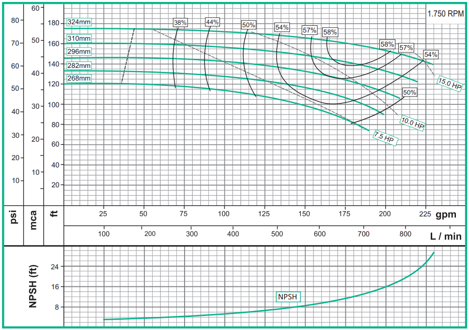 Tipo de impulsor: Cerrado, balanceado dinámicamente (ISO G6.3)
