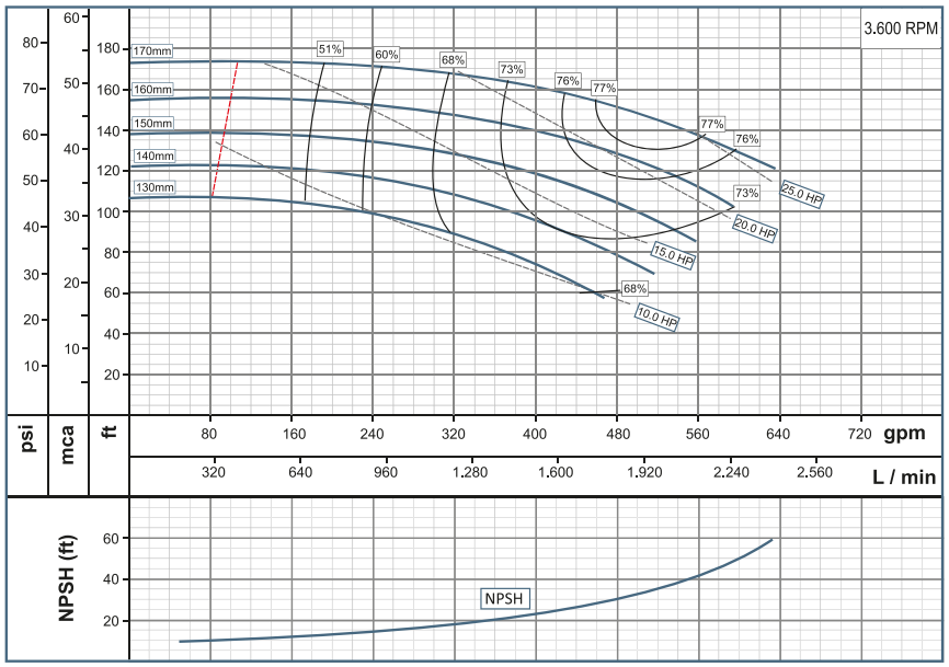 Tipo de impulsor: Cerrado, balanceado dinámicamente (ISO G6.3)