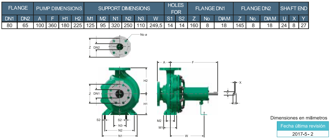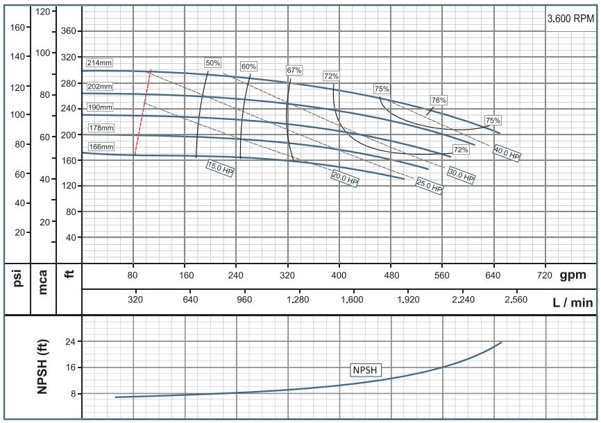 Tipo de impulsor: Cerrado, balanceado dinámicamente (ISO G6.3)
