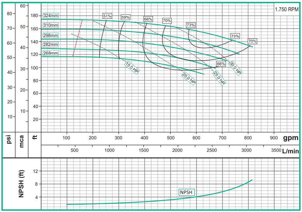 Tipo de impulsor: Cerrado, balanceado dinámicamente (ISO G6.3)