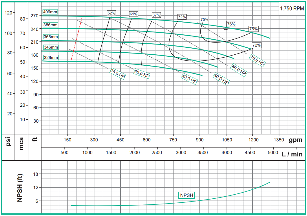 Tipo de impulsor: Cerrado, balanceado dinámicamente (ISO G6.3)