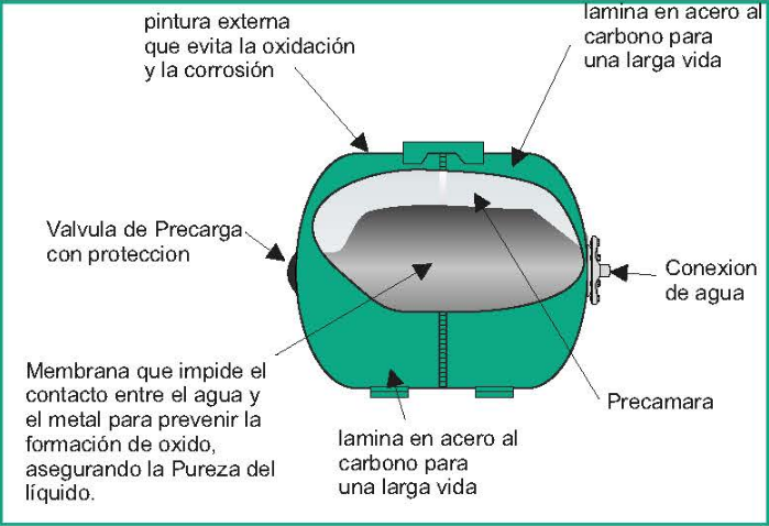* El tanque viene con una válvula de precarga de aire el cual debe ser calibrado con una presión de 2PSI por debajo de la presión de arranque del equipo.