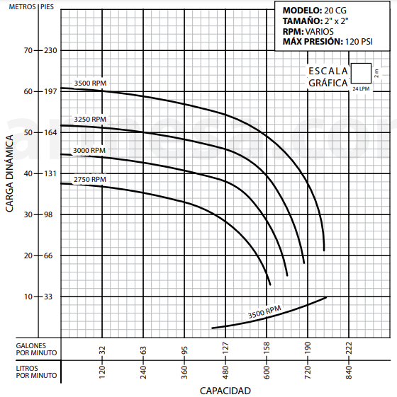 * Prueba realizada con agua, gravedad específica 1.0 @ 20 °C (68 °F); otros líquidos pueden variar el rendimiento