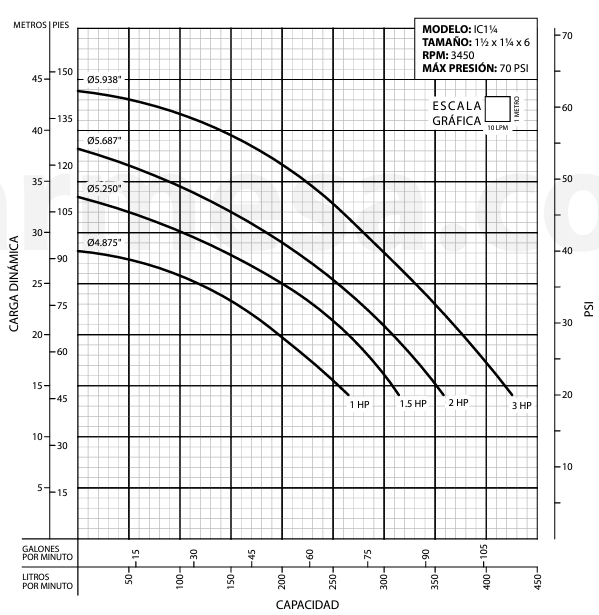 * Prueba realizada con agua, gravedad específica 1.0 @ 20°C (68°F); otros líquidos pueden variar el rendimiento.