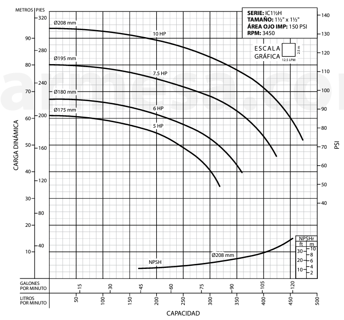 * Prueba realizada con agua, gravedad específica 1.0 @ 20°C (68°F); otros líquidos pueden variar el rendimiento.