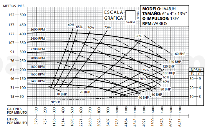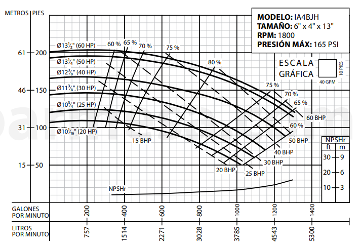 * Prueba realizada con agua, gravedad específica 1.0 @ 20 °C (68 °F); otros líquidos pueden variar el rendimiento