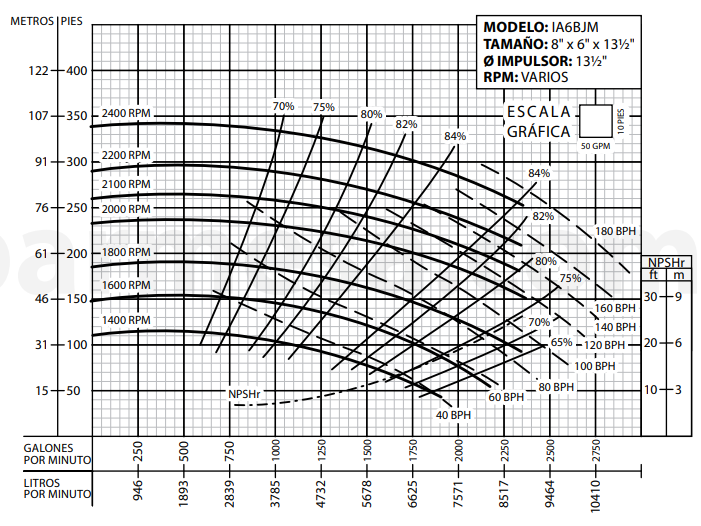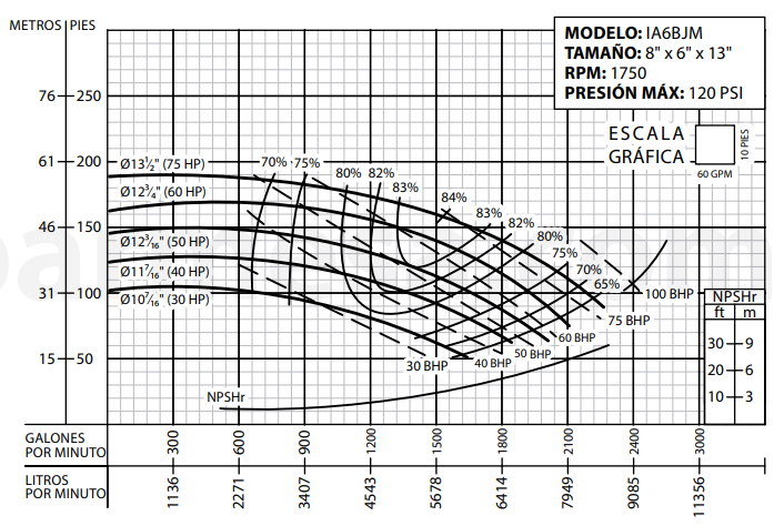 * Prueba realizada con agua, gravedad específica 1.0 @ 20 °C (68 °F); otros líquidos pueden variar el rendimiento