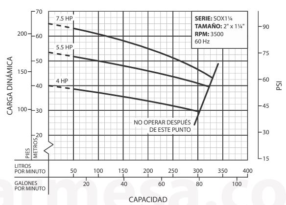 * Prueba realizada con agua, gravedad específica 1.0 @ 20 °C (68 °F); otros líquidos pueden variar el rendimiento.