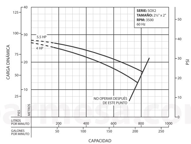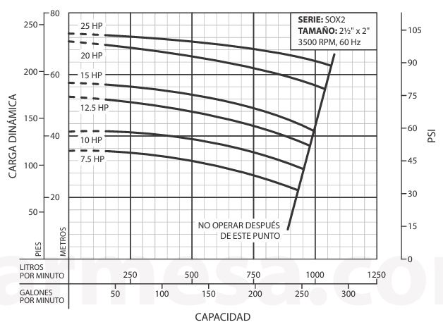 * Prueba realizada con agua, gravedad específica 1.0 @ 20 °C (68 °F); otros líquidos pueden variar el rendimiento.