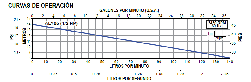 - Rango de flujo 78 – 2.33 lps / 47 – 140 lpm