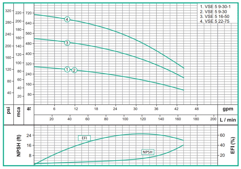 - H Max= 90 (mca= metros columna de agua). La altura (H) máxima se logra con la válvula totalmente cerrada.