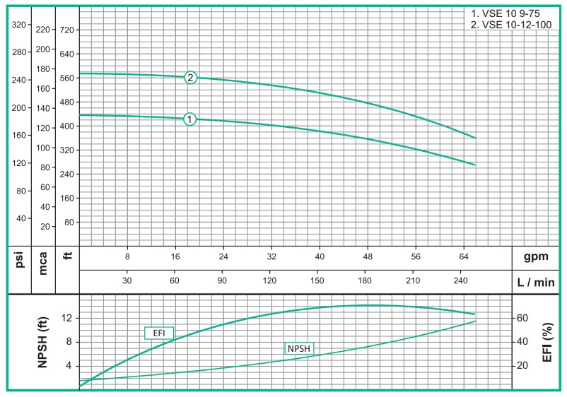 • H Max= 132 (mca= metros columna de agua). La altura (H) máxima se logra con la válvula totalmente cerrada.
