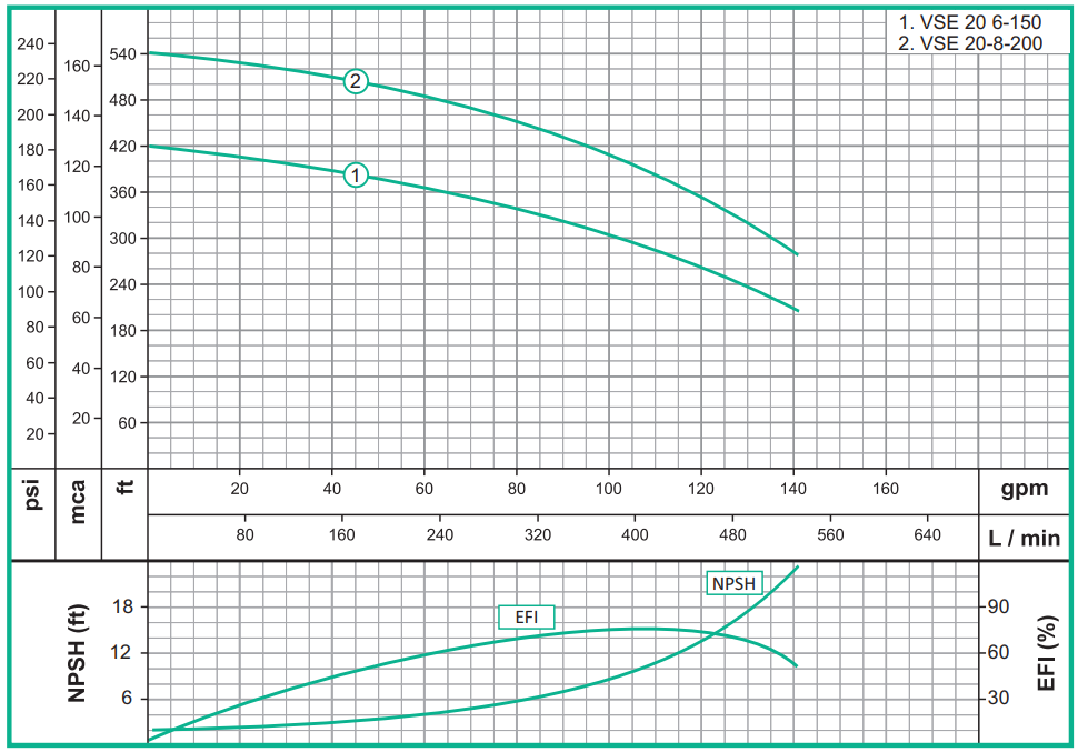 Bomba Multietapas vertical | acero inoxidable | S 2 1/2″ | D 2″ | Etapas 6 | HP 15 | Fases 3 | V 220/440 | Ref 1G0197 | VSE 20 6-150 HF